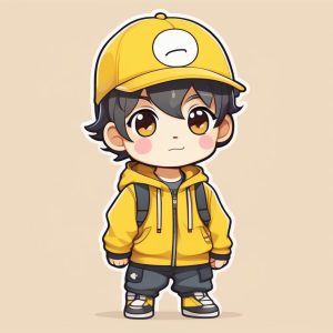 AI art prompt English:Minimalist Chibi Aviator Boy, Solid Muted Orange Background