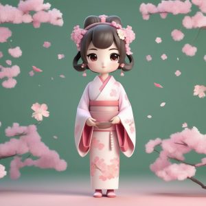 AI art prompt English:A Minimalist Chibi Kawaii Clay Figurine: Musical Girl with Umbrella