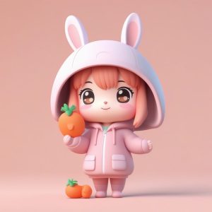 AI绘画提示词中文:一个极简Q版卡哇伊粘土盲盒公仔:甜点师女孩
