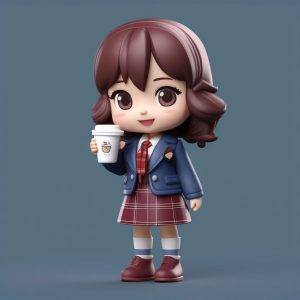 AI art prompt English:A Minimalist Chibi Kawaii Clay Blind Box: Little Witch with Broom