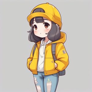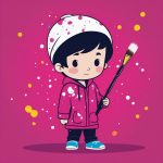 AI art prompt English:Minimalist Chibi Boy in Beanie Hat, Solid Dusty Pink Background