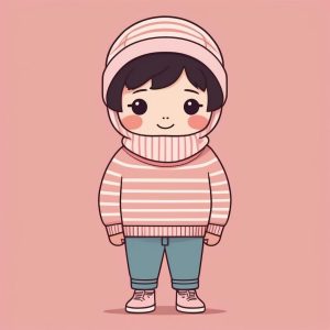 AI art prompt English:Minimalist Chibi Shepherd Boy, Solid Olive Green Background