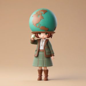 AI art prompt English:A Minimalist Chibi Clay Figurine: Winter Coat Girl with Snowball