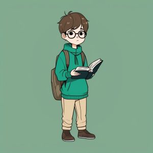 AI art prompt English:Minimalist Chibi Scout Boy, Solid Peach Background