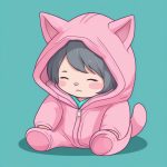 AI art prompt English:Minimalist Chibi Boy in Panda Kigurumi, Solid Muted Yellow Background
