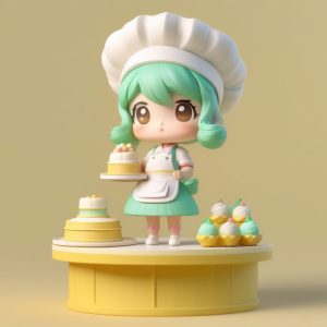 AI art prompt English:Cute Clay Chibi Vegetable Chef Girl Full Body Figurine