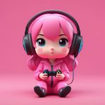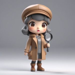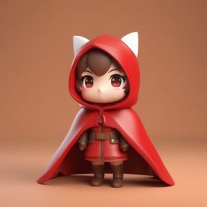 一个极简动漫角色卡哇伊Q版女孩,全身照,单人,带有小小的恶魔角和三叉戟配饰,俏皮地眨眼,泡泡玛特风格,盲盒玩具,粘土材质,哑光处理,红色、黑色和深紫色调,3D渲染,C4D,Octane渲染器,工作室灯光,高质量,8k,纯色背景,干净,简单。