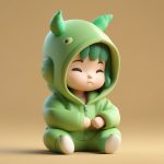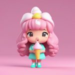 AI art prompt English:Cute Clay Chibi Snow Queen Girl Full Body Figurine