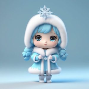 AI art prompt English:An Octane Rendered Clay Chibi Blind Box Figurine: Rainy Mushroom Girl