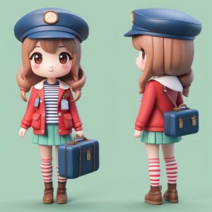 AI art prompt English:An Octane Rendered Chibi Clay Figurine: Little Chef Girl with Frying Pan