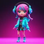AI art prompt English:An Octane Rendered Chibi Clay Figurine: Party Girl with Balloons