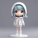 AI绘画提示词中文:一个青蛙雨衣造型Q版手办