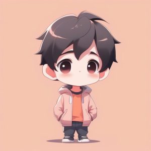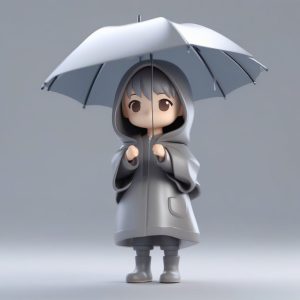 AI art prompt English – Curious Chibi Head Tilt on Neutral Grey