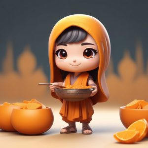 A full body standing chibi painter character, dressed in simple ancient robes, holding a brush, featuring a contemplative expression and a pose of thinking about creation. Emphasizing chibi (big head, small body) proportions and cute clay material, a refined blind box figurine style. This is a high detail 8k 3D render, realized through C4D and Octane render. Ray tracing and soft studio lighting highlight artistic pastel colors. Background: solid off-white color, clean, completely empty.