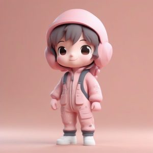一个可爱时尚的艺术家Q版人物,全身站立,动作充满创造力,表情专注,手拿调色盘和画笔。该模型采用光滑的粘土材质纹理和圆润的特征,遵循盲盒手办美学。使用C4D和Octane渲染器实现高保真3D渲染。使用光线追踪和柔和的工作室照明,突出了充满活力的柔和色彩,尤其是颜料的色彩。背景:纯奶油色,干净、简单、完全空白。8K高细节。