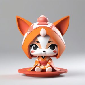 AI绘画提示词中文:一只极简PopMart小幽灵Q版女孩全身模型