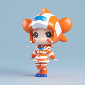 AI art prompt English:Minimalist PopMart Little Ghost Chibi Girl Full Body Model