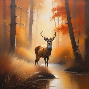 An abstract still-life composition of assorted fruits on a vintage wooden table. Impressionist oil painting style with energetic, visible brush strokes and bold dabs of color. Oranges, apples, and grapes depicted with exaggerated hues. Background melts into swirling colors, highlighting the texture and form of each fruit.