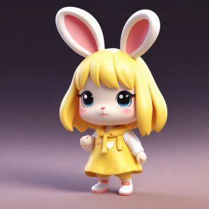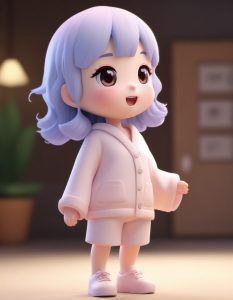一个全身站立的Q版音乐教师,具有chibi大头小身体比例。她抱着一把微型小提琴。以盲盒手办的黏土材质风格呈现。这是一个高细节的8K 3D渲染,使用C4D和Octane渲染器制作。画面中使用了光线追踪和柔和的工作室照明,突显奶油色和浅蓝色的柔和色彩组合。背景是干净、简单的纯浅蓝色,完全空白。