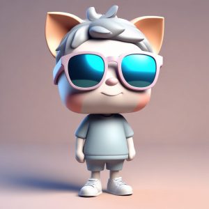 这个设计融合了摇滚的酷感和Q版的可爱。Q版少女抱着一把迷你电吉他,做着经典的“摇滚”手势,表情坚定且略带叛逆。柔和的摄影棚灯光和光线追踪技术,使暗色的摇滚服装在粉彩色调下依然具有精致的层次感。粘土材质使其看起来像一个可以收藏的潮流盲盒。