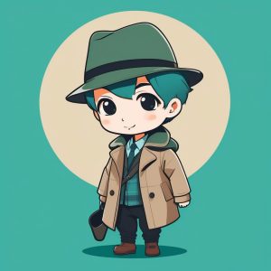 AI art prompt English – British Detective Chibi Boy Trench Coat Full Body Prompt