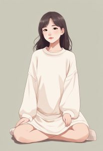 AI绘画提示词(中文) – 🦊 慵懒风:oversize卫衣少女极简线稿,冬日全身照,超干净纯色背景。