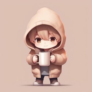 ☕Cozy Fluffy Chibi Girl Prompt: Beige Solid Background – AI art prompt(English) :