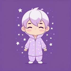 AI art prompt English – Cozy Chibi Aesthetics: Yawning Character in Pajamas and Cream Background