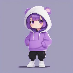 AI绘画提示词中文 – 慵懒乐师Q版全身图:抱琵琶,淡紫色高细节渲染