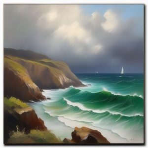 A wide-open impressionist oil painting landscape of golden wheat fields under a warm summer sky, visible thick brushstrokes, vibrant ochre and emerald tones, distant farmhouses, gentle rolling hills, glowing sunlight, dreamy and atmospheric, oil impressionist warm earth tones style.