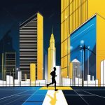 一位飘带女孩的极简剪影,线条优雅流畅,覆于柔黄色纯色背景中。全部元素用单一色彩表现,无面部及细节,纯净且和谐美感。