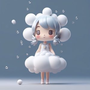 AI art prompt English – Chibi Cloud Girl with Umbrella 3D Render Prompt
