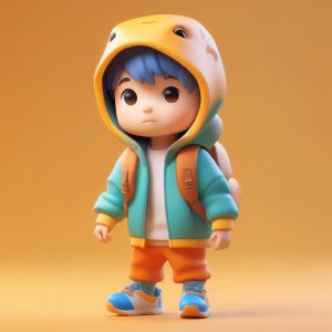 AI绘画提示词中文 – 宇航员男孩盲盒手办:C4D粘土风格Q版全身渲染,柔和渐变背景8K