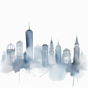 AI绘画提示词中文 – 雨后欧洲老街:灰蓝调大气透视水彩建筑提示词