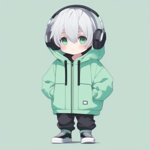 AI art prompt English – Sporty Chibi Boy in Stripe Hoodie, Confident Fist Pose, Sky Blue Background