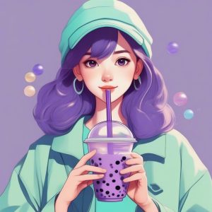 AI art prompt(English) – Bubble Tea Girl: Secrets to Q-Elastic Cute Japanese Line Art Portrait AI Generation