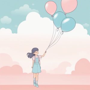 证件照级动漫脸:极简可爱少女肖像,纯色天蓝色背景,清晰度高。