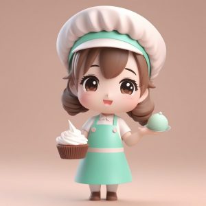 AI art prompt(English) – C4D High Polish Chibi Baker Blind Box 3D Model Prompt