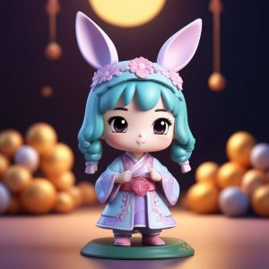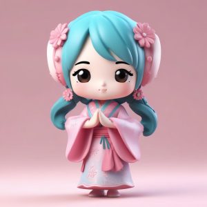 💧Blue and White Porcelain Chibi Girl, Full Body 8K Render – AI art prompt(English) :