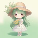 AI绘画提示词(中文) – 治愈系穿搭:AI生成手持小花的粉蓝系Cottagecore女孩插画