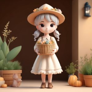 AI art prompt(English) – Healing Aesthetic: AI Illustration of Pink-Blue Cottagecore Girl Holding Flowers