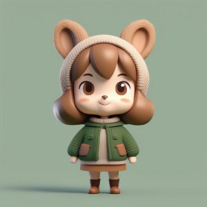 AI绘画提示词(中文) – 治愈系卡通人像:如何用AI画出粗线条针织毛衣质感的少女特写