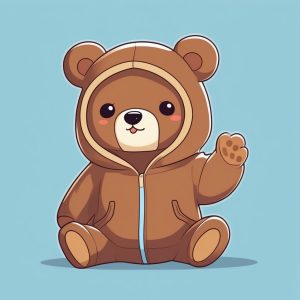 AI art prompt English – Shy Chibi Holding Teddy Bear on Solid Blue
