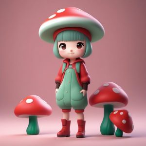 AI art prompt(English) – Therapeutic Chibi Mushroom Girl: Clay Texture 3D Rendering Guide
