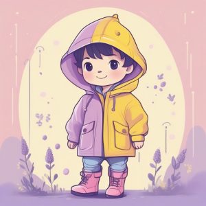 AI绘画提示词中文 – 治愈系Q版女孩:薰衣草色简约涂鸦全身站立图