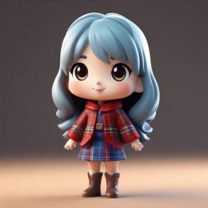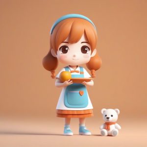AI绘画提示词(中文) – 治愈系Q版少女:抱着泰迪熊的甜美表情3D粘土全身像