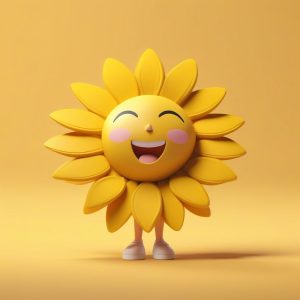 AI绘画提示词中文 – 治愈系Q版太阳花:Octane渲染全身,微笑向阳