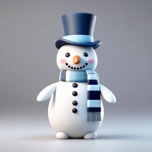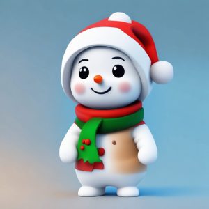 AI绘画提示词(中文) – 治愈系Q版雪人角色设计:3D粘土材质,冬季盲盒提示词分享