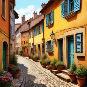AI art prompt(English) – Warm-Toned Hand Drawn Town Night Scene Wallpaper Prompt