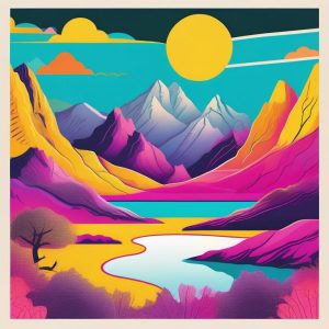 AI绘画提示词中文:自然元素极简抽象表现,连绵山川以单色线条勾勒,布局留白广阔,画面平和静谧,兼具海报设计感。